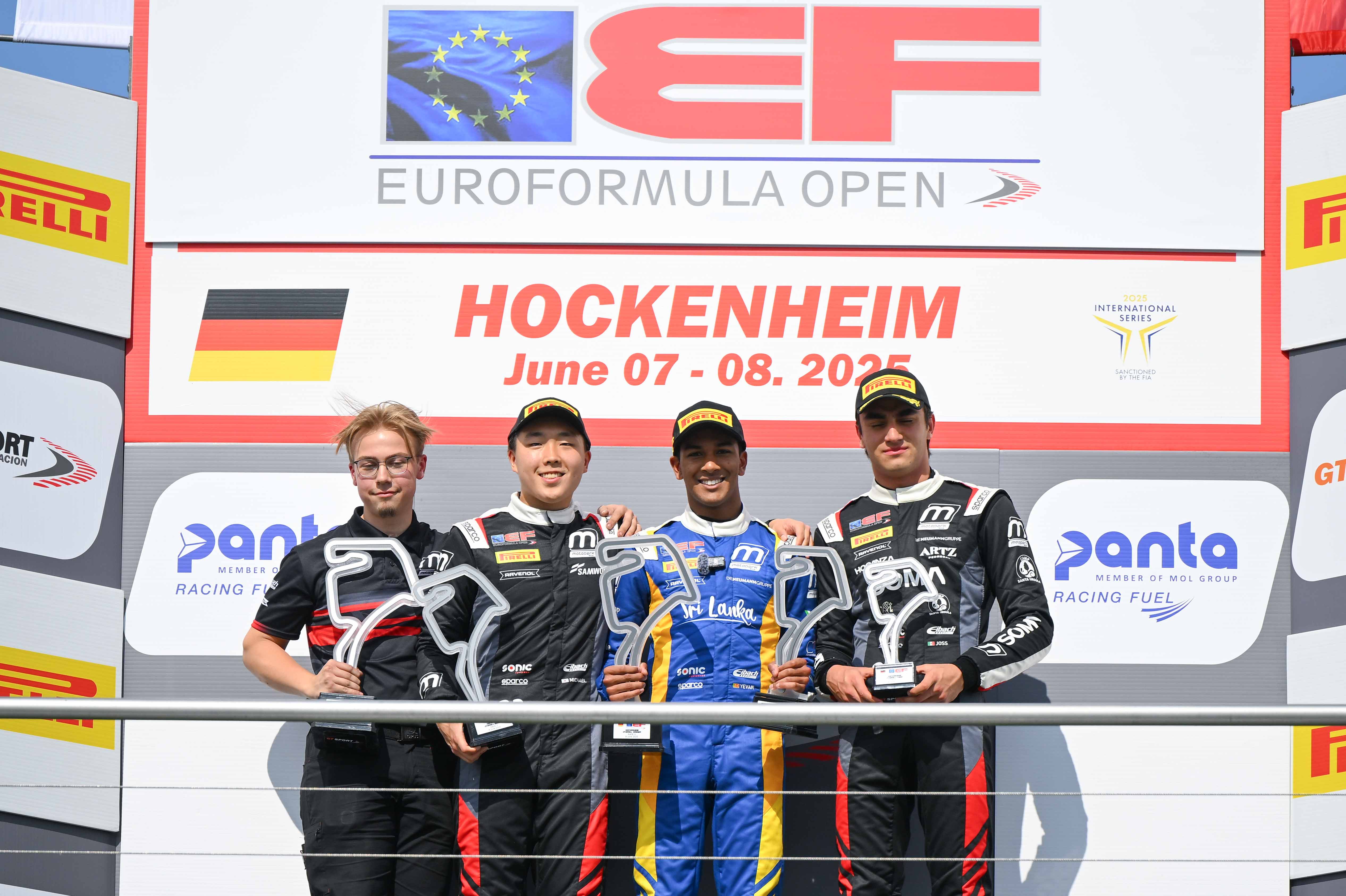 By winning Race 3 at the Hockenheimring, Yevan David kept up with the tradition of being victorious at every track visited so far by the euroformula Open this season. Moreover, with this fourth success of the season, the Sri Lankan of Motopark keeps the command in the overall standings, now with an 18-point advantage on a new closest rival, his teammate Michael Shin.