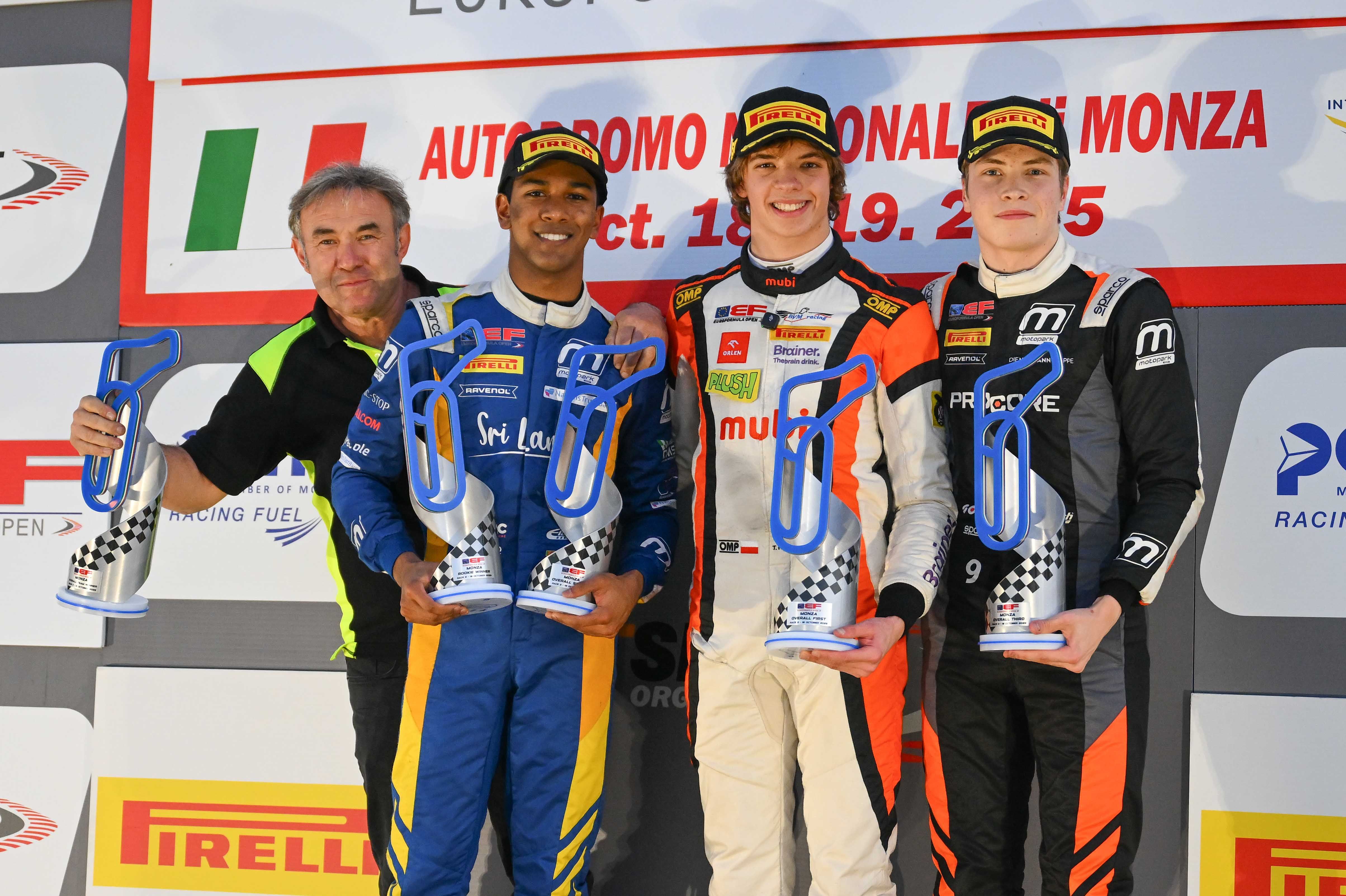 With this sixth win of the season, the Pole of BVM Racing netted the title one race before the end. He was elated after the success and receiving the warm accolade of friends, family, fns and the many media that came from Poland. “What a day and what a race, I have no words, I am over the moon”, he said, “It was so nice to see so many Polish flags around the track. I want to thank you the team for the great job, and everyone who has supported me in this fantastic campaign.” At his side, a Giuseppe Mazzotti soaked in champagne was no less happy: “For a small team like us, it is great to win the title and to do it this way”, commented BVM’s boss, “At some point in the race, we just told Tymek ‘go for it’, there was no other way to do it, and he did a fantastic job. Since the very first day Tymek got in the car, we knew we had a true racer and a winner with us.”