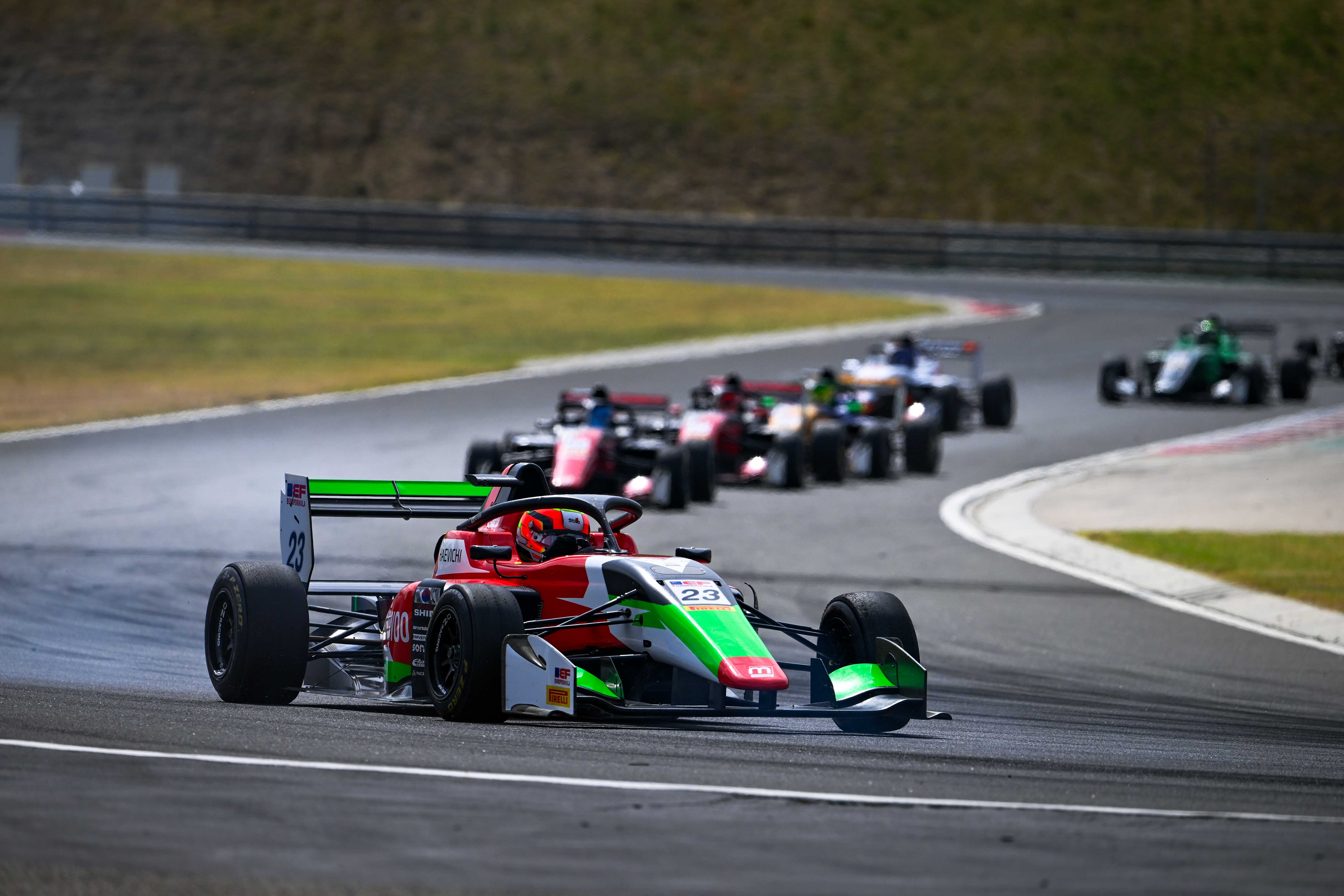 Michael Shin (Team Motopark) won Race 2 at the Hungaroring, in a morning with milder weather, after a great start, beating Edward Pearson (Nielsen Racing) and teammate Yevan David.