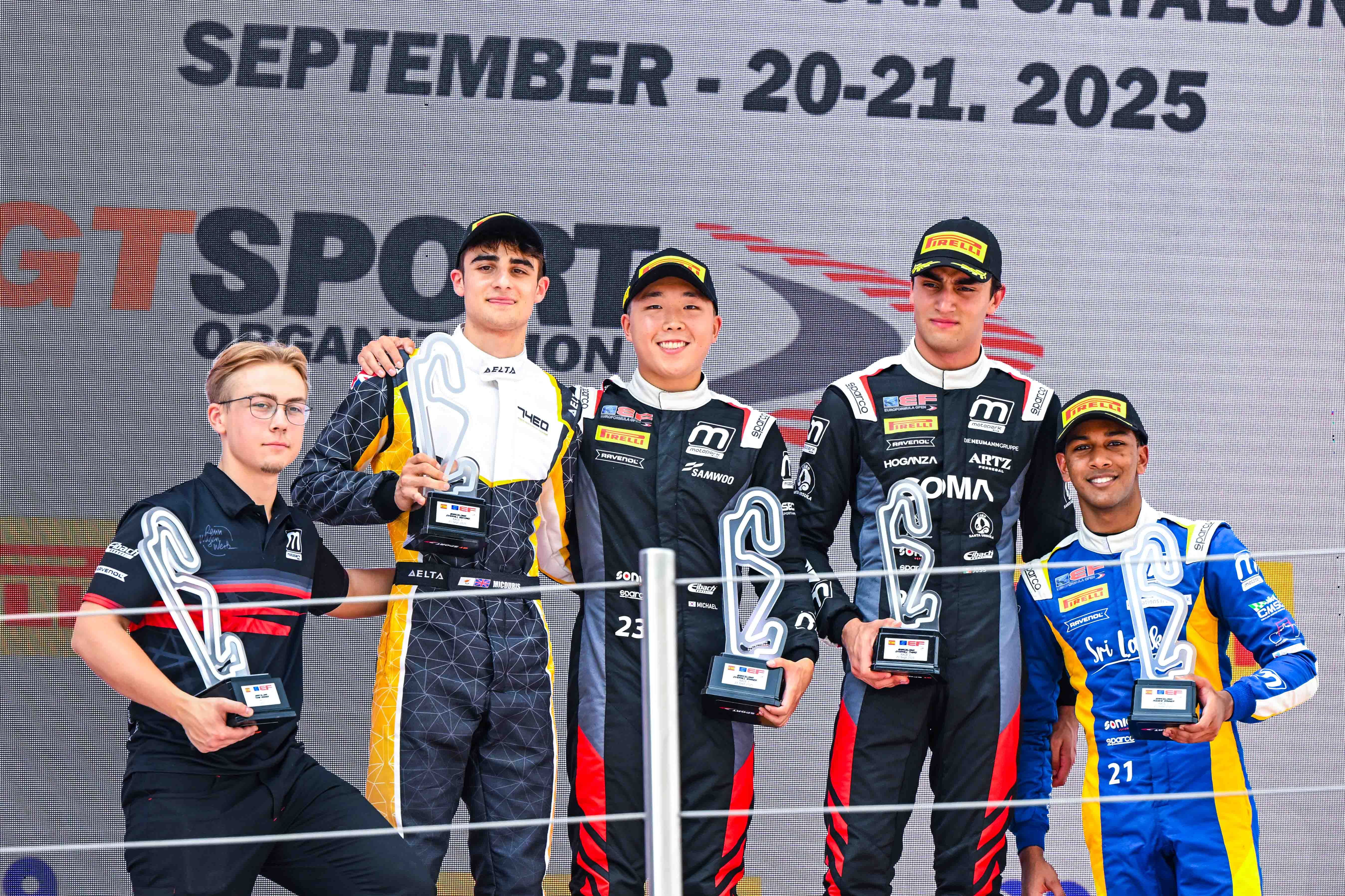 Eventually, Micouris retained second, conquering a superb podi0umpodiumin his EFO debut, ahead of Joss Garfias (Motopark) and Alessandro Famularo (BVM Racing). Fernando Barrichello (Motopark) finished sixth ahead of Kuchrczyk, Ed Pearson (Nielsen), and Everett Stack (Motopark), who struggled throughout the race.